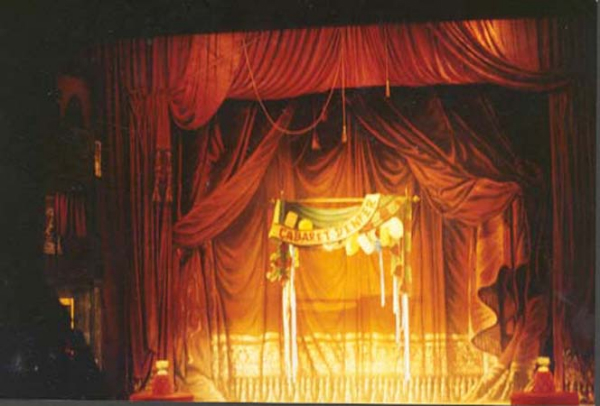 Gemalter Bühnenvorhang für die Operette "Orpheus in der Unterwelt", Nationaltheater Mannheim